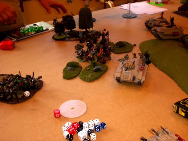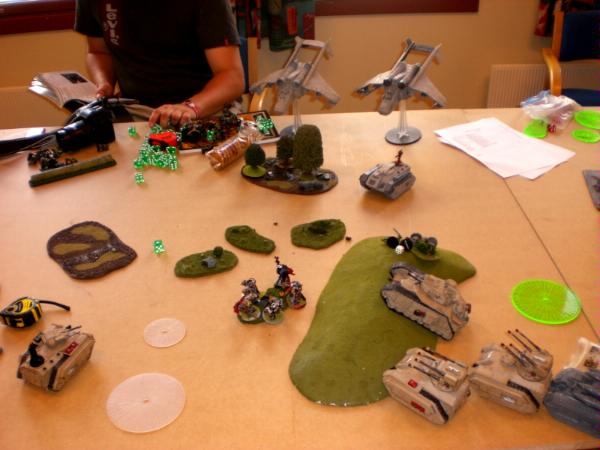 He focusses on taking out some of my firesupport, and manages to take out both my manticore and my russ, he also keeps the vendettas shaken quite often, but I generally just speed away and fire next turn.