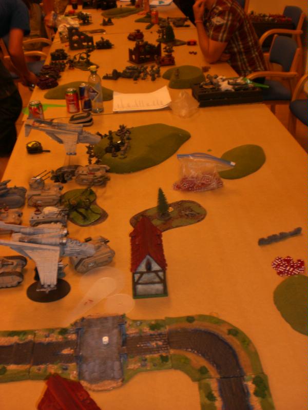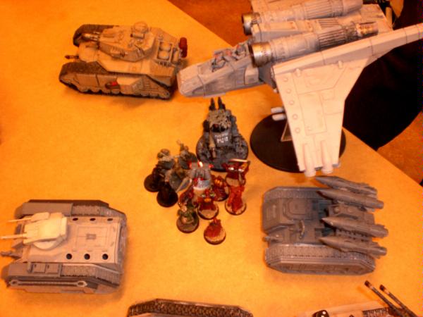 With that brutal turn, the game is already won for the imperial broadsword, but my opponent takes it in stride and does the orky thing, storming forwards. He wipes out my CCS with killakanz and both vendettas with a dreadnought and the dismounted trukkboys.