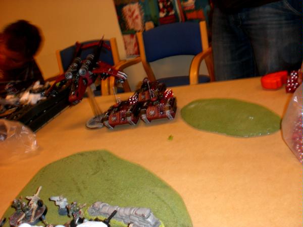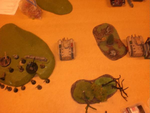 I get first turn, CCS goes in one vendetta. The vendettas scoutmove up, the one with the CCS 12" in front of the BW, the other in a position to get sideshots on it or to take out a trukk if needed. He fails to sieze.