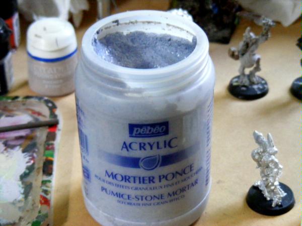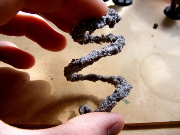 I then coated it in pumice-stone mortar. When this dries it looks very grainy and I thought that, with a bit of dry brushing, this would look like a coiling swarm of flies.