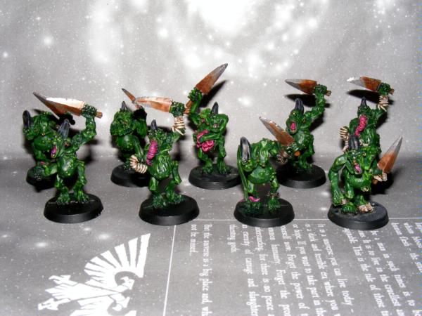 @ Axel: this was just a test model to try out the paint job, it will get a basing eventually. Automatically Appended Next Post: Now have five fully painted Plaguebearers and couple that im in the process of converting slightly to show the noxious touch upgrade. Here are the completed daemons: