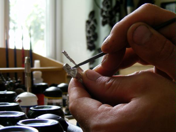I started by preparing the model, filing off all the mold lines etc. I also filed off the Imperial Aquila on his belt and eye of his staff.