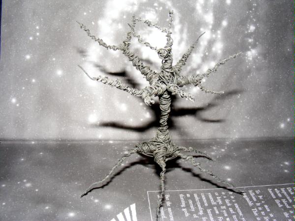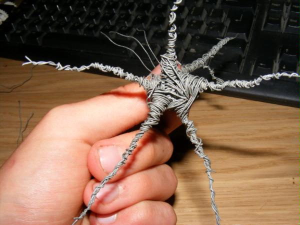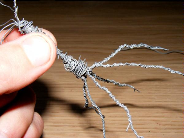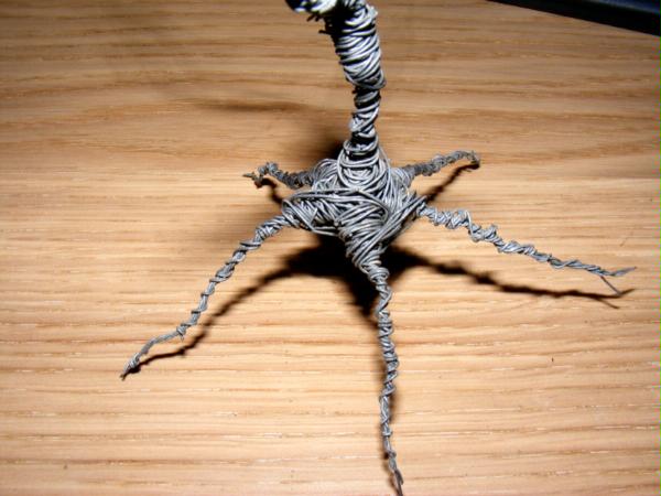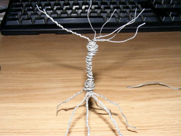 I repeated this on each branch, putting the protuberence at different angles each time. Again I found I didn't have room for seven branches and wound two together so I had six, one of which went strait up. Here is the finished skeleton: