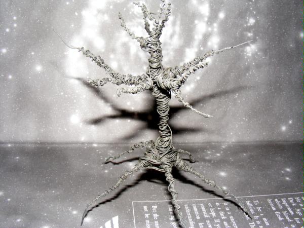 With the rough shape of the tree sorted I started to thicken up the trunk. I was going for an hour glass shape so started winding at either the base of the roots and working up or vice versa. Again figures is easier until you start to reach the end of a strand. At this point its easier to finish it off with the pliers. If you can try and tuck the ends of the wire in or under somewhere as they are damn sharp.