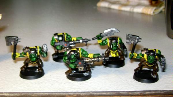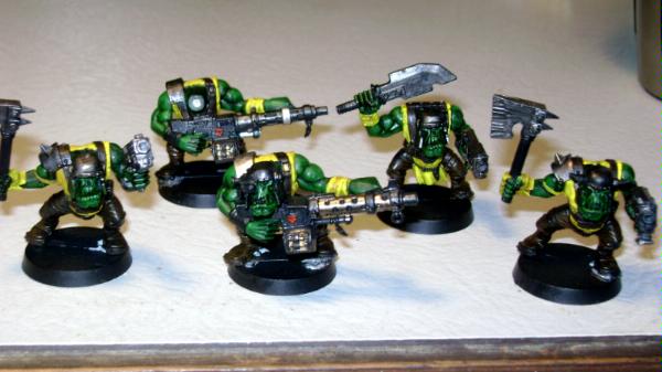 about the painting now, i gotta say WOW! that looks much better than my guys and the ork skin looks pretty good! you are missing the teeth and nails in the last picture but other than that, they look pretty good!