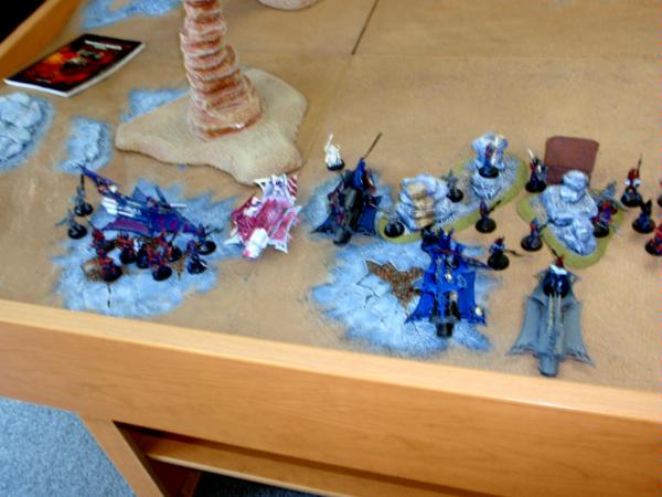 Amar'ath, hearing the mayhem going on back at his beacons, barked an order into his earpiece. Those mandrake beasts weren't cheap, and they would do something useful for him! One of the mandrakes hissed back over the transeiver 'Of Courssse, lord. They shall be destroyed. Your warmachines are already doing a wondrousss job of staining their pristine white armour dark with anti-matter and bloood.. yesssssss'