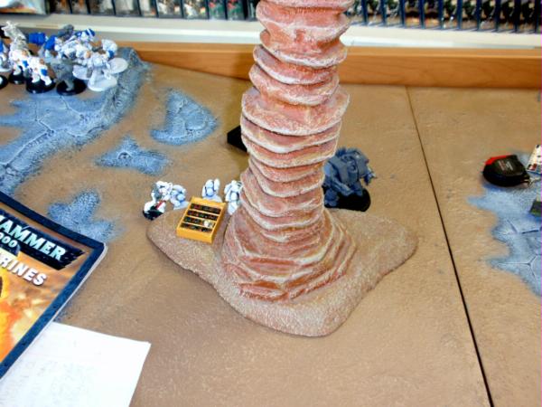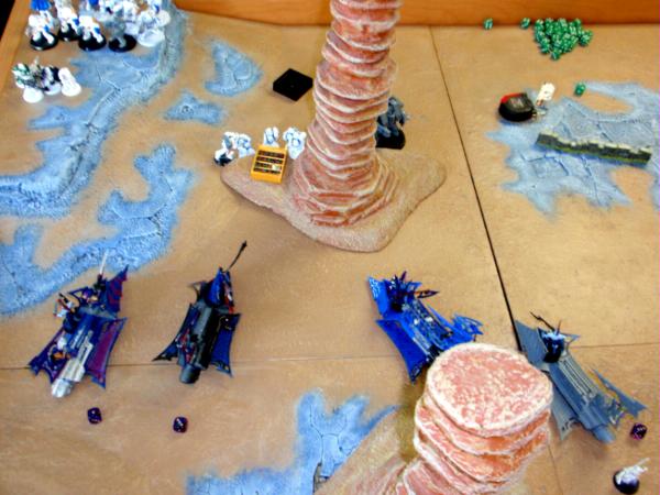 ML squad infiltrates next to the dreadnought (why couldnt they have just deployed there? O.o) and the scouts on top of one of the spires... i thought cheese but we agreed they can't get down, and it's a 5+ cover (4+ with camo cloaks)