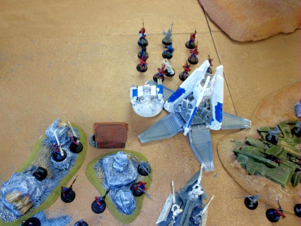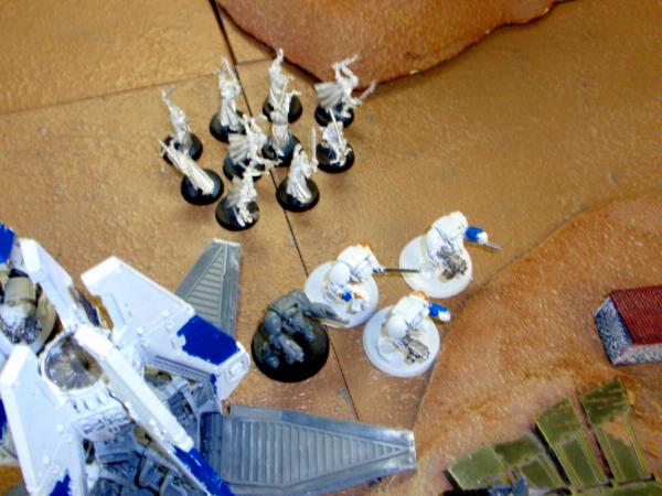 Khar'lan, now lounging with most of his squad, save those taking potshots at the dreadought, observed that there were more of the enemy descending from flying packs, and another pod left a crater directly across from Amar'ath's raider.