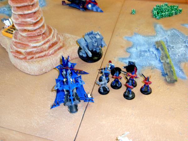 The venerable Dreadnought stuns one of the raiders (warrior squad's), his missiles miss again, and termis kill 4 warriors, thanks to allocation one of them happens to be a