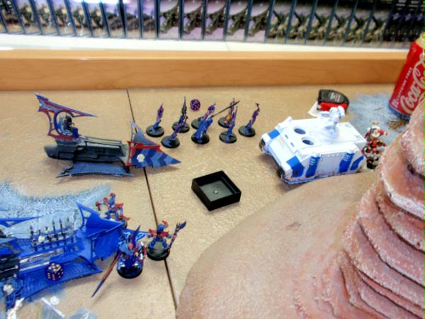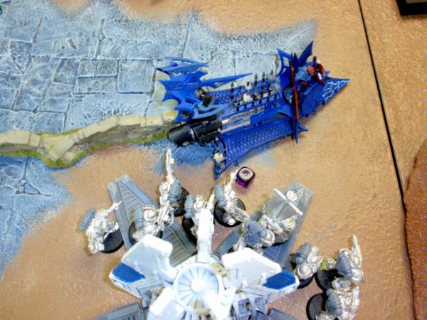 Amar'ath turned to look at how Kibeth was faring, and saw her leap off her raider and charge towards the vehicle that tore apart three of his retinue. The raider's lance pierced and exploded the vehicle, and he grinned as he saw one of her wyches burn to a crisp and 7 figures emerged from the smoldering wreckage. In a blindingly fast movement, she and her squad assaulted the warriors and the others in the area. He watched with relish as she confronted apparently superior warriors- neither her nor her retinue managed to kill a single one, but 3 of her guards fell in the scrim. She looked back, and their eyes connected, and she turned back to the fray with renewed determination. He grinned and turned away.