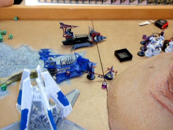 At this point, he gave up and i dont blame him. His terminator may have been able to kill that warrior squad he was about to charge, but i was about to kill his last troop squad able to hold objectives with the lord's squad assaulting in with the wyches. Although I did try to get him to play it out so he could get more experience.