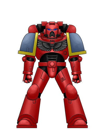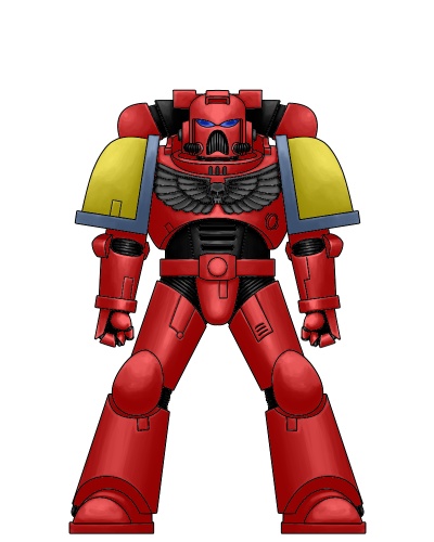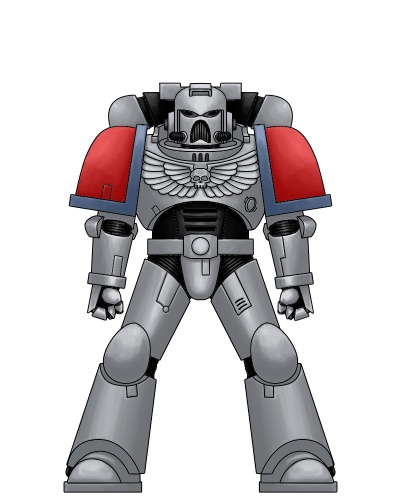 Personally, I'd paint mine gray, his left shoulderpad would be the mechanicus shoulderpad, and on his right shoulderpad I'd pain the great company badge.