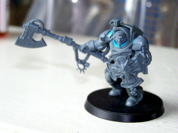 I am working on converting what frost axe out of a thunderhammer. I am curious to know what you guys think about the conversion. The entire model is a WIP, hence the blue tacky putty. The shaft may be to long to look cool. What do you guys think? I've huge respect for the opinions of this community, and would appreciate having some constructive criticism before I continue working.