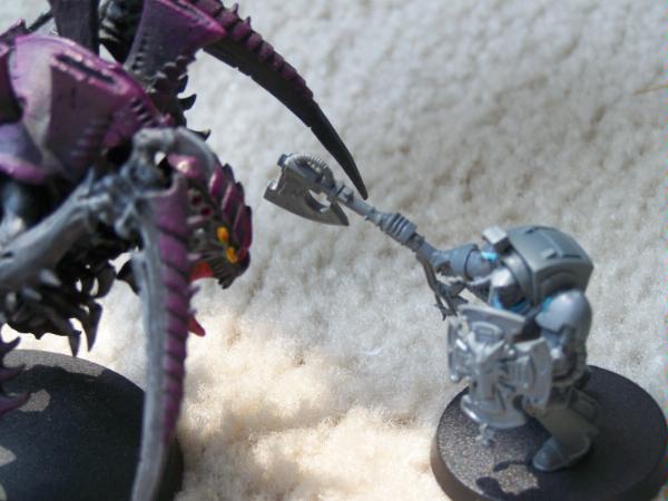 Funny enough, When I was converting this hive tyrant, I specifically sculpted the neck to make sure that it's snarling face would be right up against a space marine's so they could look each other in the eye.