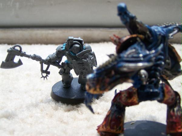 Someone on Bolter and Chainsword got me to thinking what this axe might look like up against some monstrous creatures. I snatched a few of the shelf and took some quick and dirty pictures.