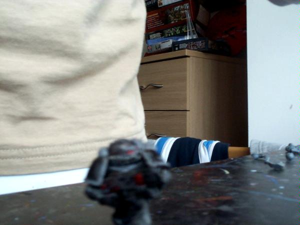 How about putting a plain sheet of paper as a background - force the camera to focus on the mini? As a fellow Relictors player I'd love to see some other armies out there!