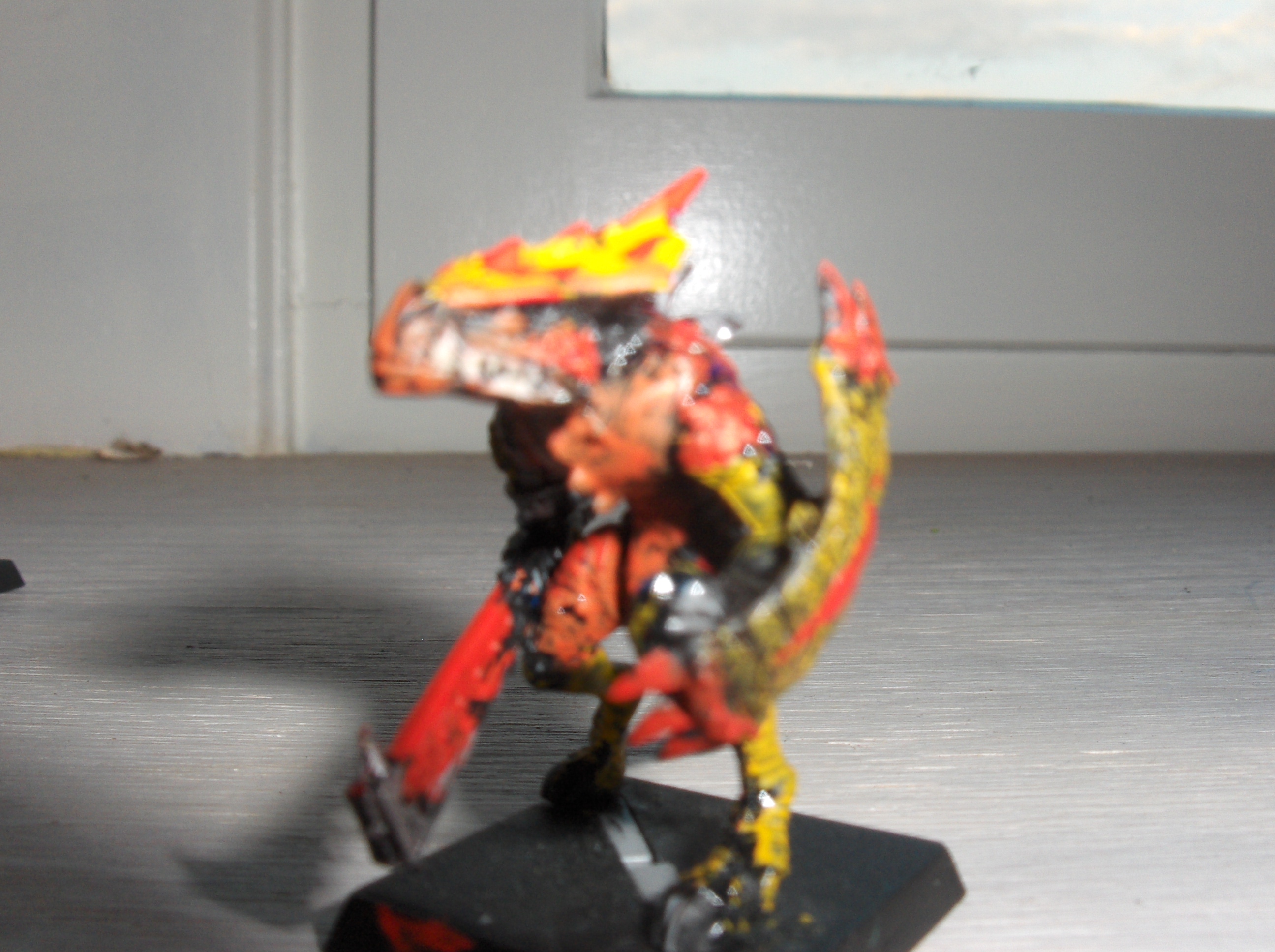 The cavalry has a good colour scheme. How are you going to justify it though, lizardmen are probably the most anti-chaos race in WFB?