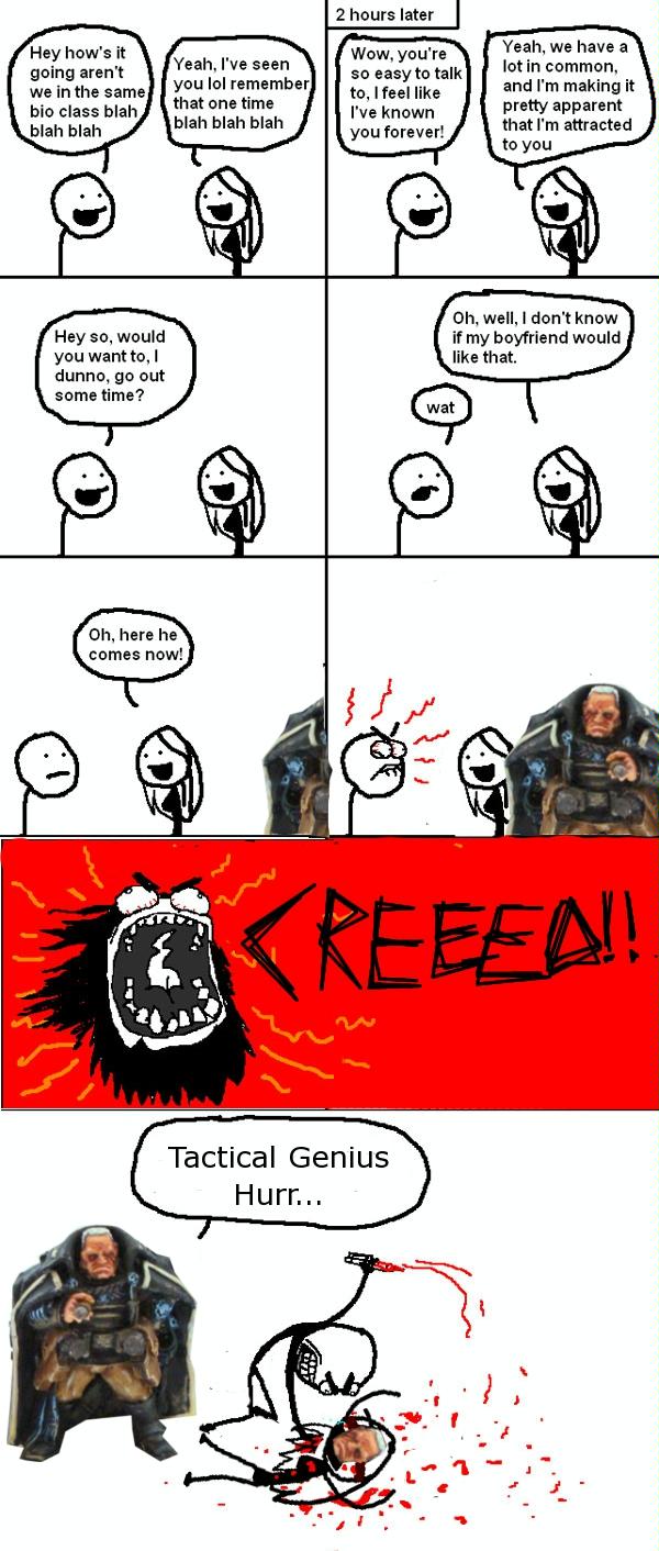 SilverMK2 wrote:@Gonads - I imagine the guy attacked Creed, but Creed outflanked his girlfriend into his place and gave her a Creed mask?