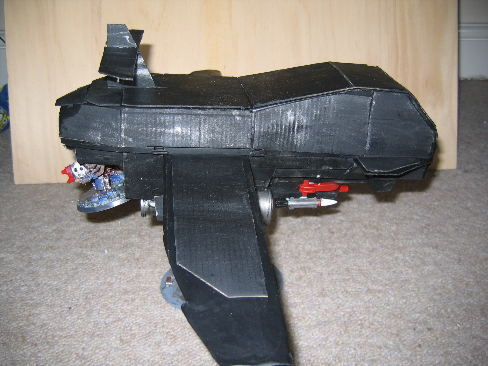 Hi, I am a huge fan of scratch building mostly because I rairly have money to buy some stuff. Unfortunately this means I also have difficulty getting plasticard and other more commonly used materials. This means I have to use what's lying round my house: cardboard. This obviously means my projects are by no means as impressive as those using mostly parts of other kits and plasticard as I have seen out of all other storm raven attempts. (ALL using the valk kit)