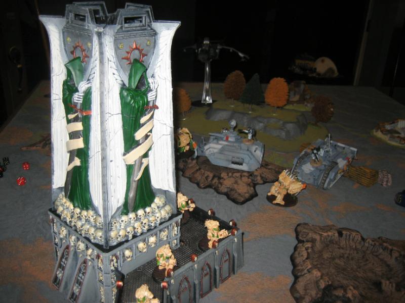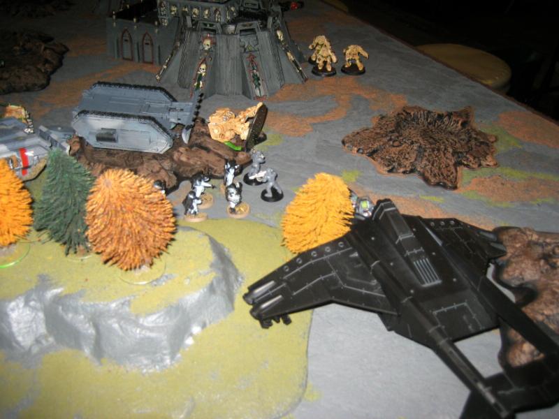 The fortess terminators exit the fortress and shoot at the vendetta for no damage. The multi-melta dread stretch's to max range but is able to catch the rear of the executioner and blows it up.