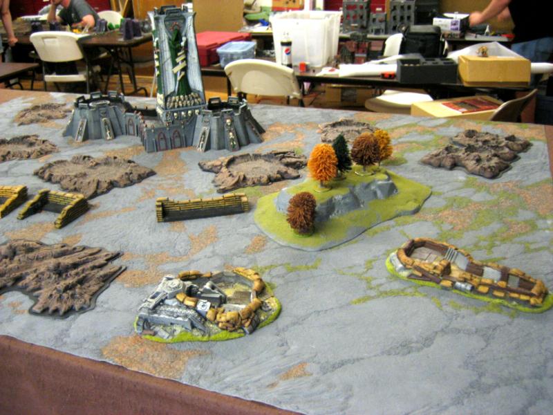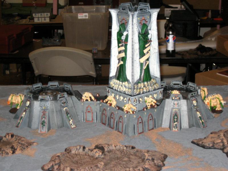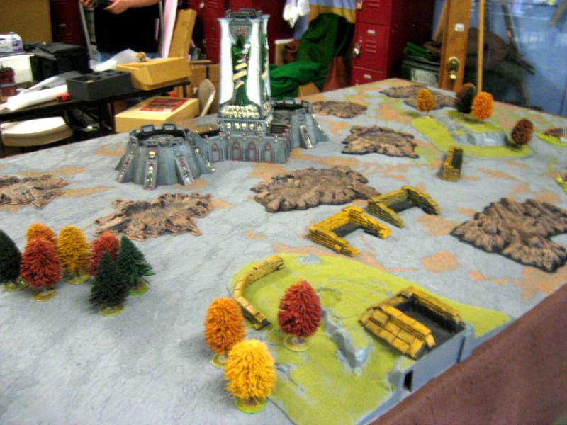 Deathwing: We rolled off and I won the roll to go first and decided to take it. One shooty terminator squad went into the fortress, all the dreadnaughts were placed on the sides. Belial and the other 3 squads were held in reserves for a death wing assault.