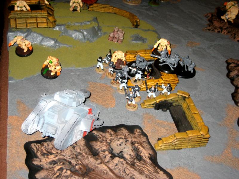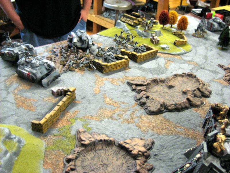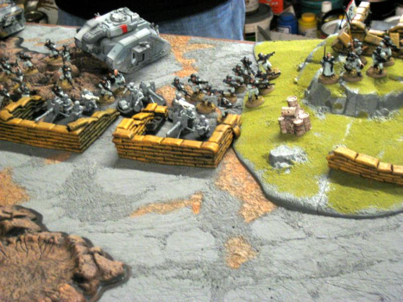 Guard: Blob and company command squad in the middle anchored on one side with the punisher and plasma sentinnels, anchored on the other side with the executioner and the 2 chimera's. One vet squad and the vendetta are held in reserves.