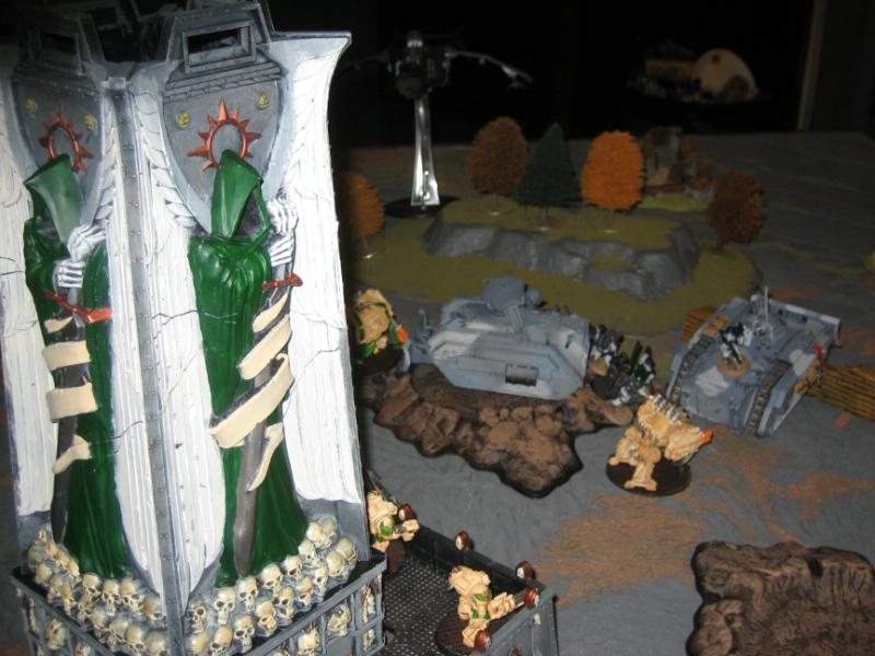At the end of the fight there are 5 terminators and 1 dreadnaught left on the deathwing side and 1 vet squad, their chimera, and an immobilized vendetta left on the guard side. A nice fun bloody battle!
