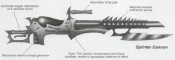 The Splinter Cannon is the most lethal of the three, and much more expensive to produce, as it incorporates several additions to allow the user to fire this large, bulky weapon even while charging into assault.