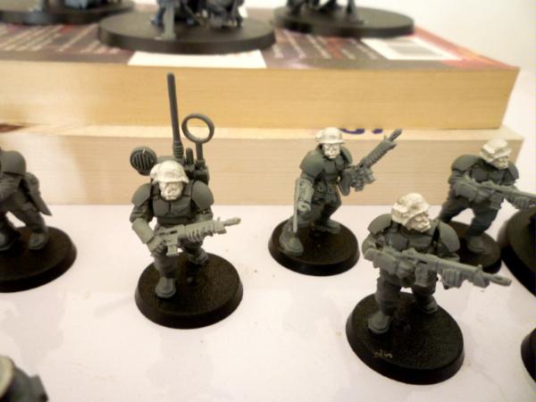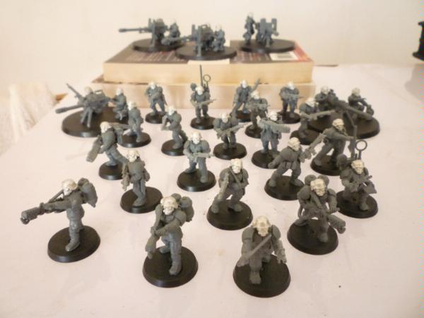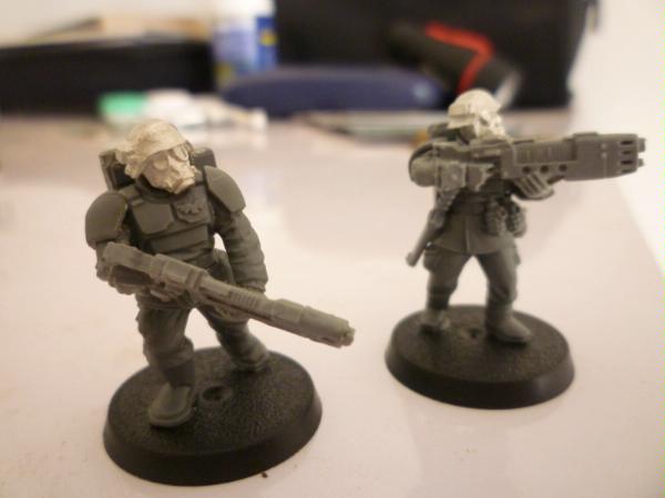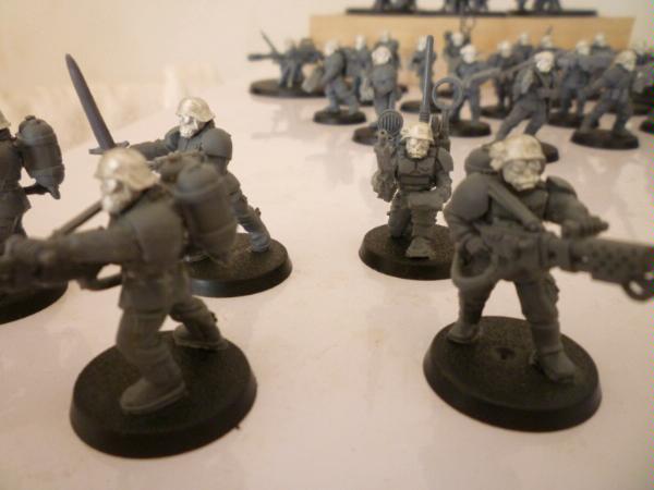 Here's a closeup of some of the infantry, you can see where I've had to alter the position of the shoulders to get a decent pose for the forgeworld rifle. I need some greenstuff!