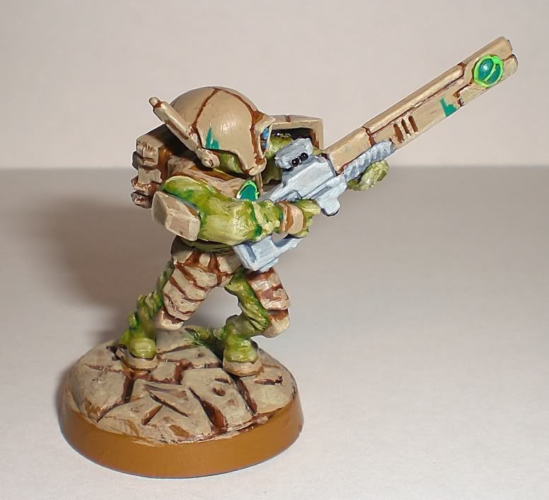 It's been a while since I dabbled in anything Warhammer related, having been busy with finishing studies, real life in general, and another game system. But now I am returning, and picking up a new army on the go aswell. So here are some pictures of my first Fire Warrior.