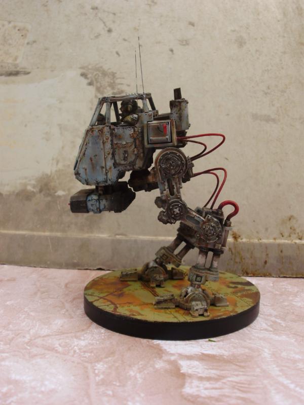 Another way which is a little harder and more controlled is to highlight the armour in small jagged shapes in areas where you want the chips. Then paint small jagged paint chips with the mix mentioned earlier on these areas leaving some of the original highlighting around the edge. If you want to get a rusty effect use thinned down artists' oils and bend and run them into and around the chips, as seen on the sentinel.
