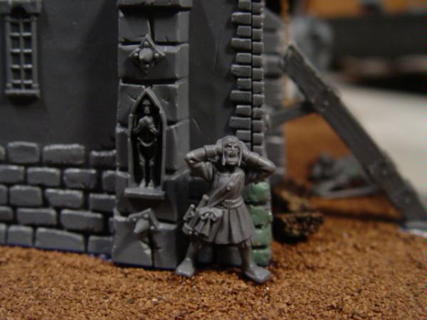 @Platuan4th- Aha! I actually had thought about that at the very start of the terrain peace but must have completely forgotten about it until you mentioned that! Ill see if I can dig some up and try is out... It would also help explain the idea that theres a handful of empire guys inside, tis why the marauder is breaking down the door! @Pagarus- I love the idea, I just don't know how it would work with the rest of the scene. What I mean by that is, Ive tryd to make every little bit of the scene justified. "This guy climbs the tower, throws a guy off and stabs another" "This guy stabs an empire soldier and climbs the wall" etc etc. However, since none of the marauders (or empire guys for that matter... cause you know, friendly fire and what not) how crossbows or bows, it would be somewhat random and unjustified as a whole I think. I might be able to do it with a javalin however, and put one of the bundles of javalins with the horsemen to justify that.