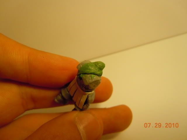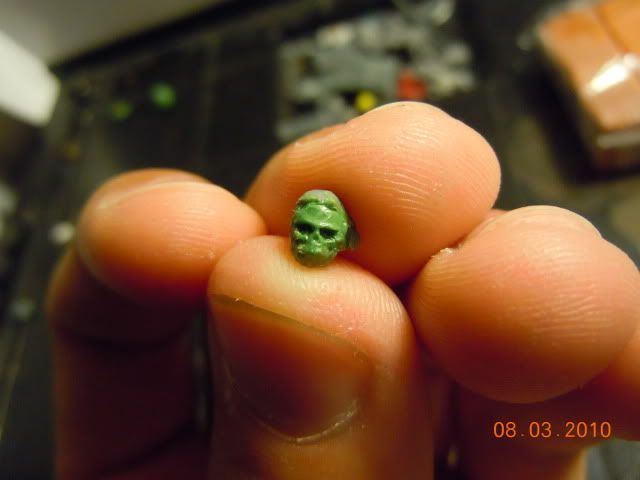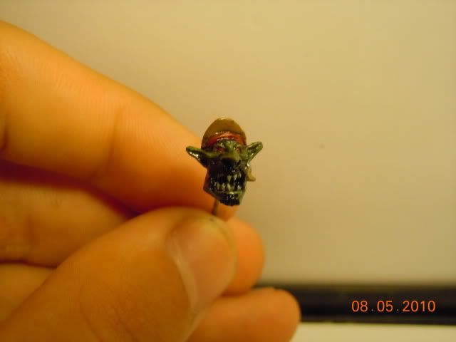 I decided to throw some paint on my grot head last night and I still dont know if i like how it came out. (dont worry about the shineyness I'll give it a shot of dull coat)