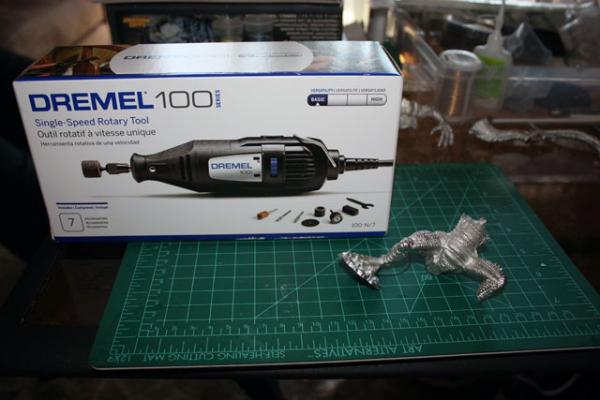 Next step was actually opening up the Dremel!! This is the first electric tool I've bought specifically for use with minis, though I'm going to justify buying it by looking for things to do with it around the house. It's the cheapest model, though, so it doesn't need THAT much justification.