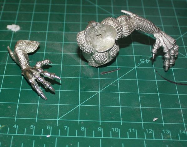 When I opened the box, one of the model's feet fell off. That's okay, as I was already planning to chop off all of the feet anyways (the two back feet are connected to giant rocks, which are just not useful for a flying model). I'm going to make a mold of the top of that foot so that I can cast copies of them for the rest of the model. I'll have to hand-sculpt the bottom of the feet, but I'm OK doing that.