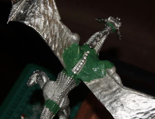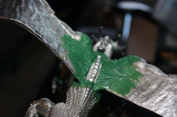 Later, after that layer fully cured, I gave it a second layer of muscle, to mate the original piece's shoulder socket with the new position of the dragon, and then mounted the second wing (which is currently waiting for the GS to cure before giving it ITS second layer.