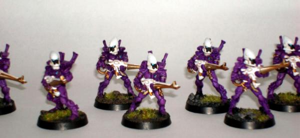 So you're joining me on this adventure rather early on, where I've just finished painted the Guardians. I've decided to go for a colour scheme of primarily Purple and White, with generous amounts of gold to emphasise their opulance/aloofness: