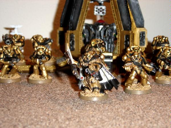 Not a power fist, bigger because there is a heavy flamer attached to his gauntlet under the cover. I have a vulkan model I filed off the salamander heads and cut the banner off then painted him up my chapter's colors. If you want a head on shot,