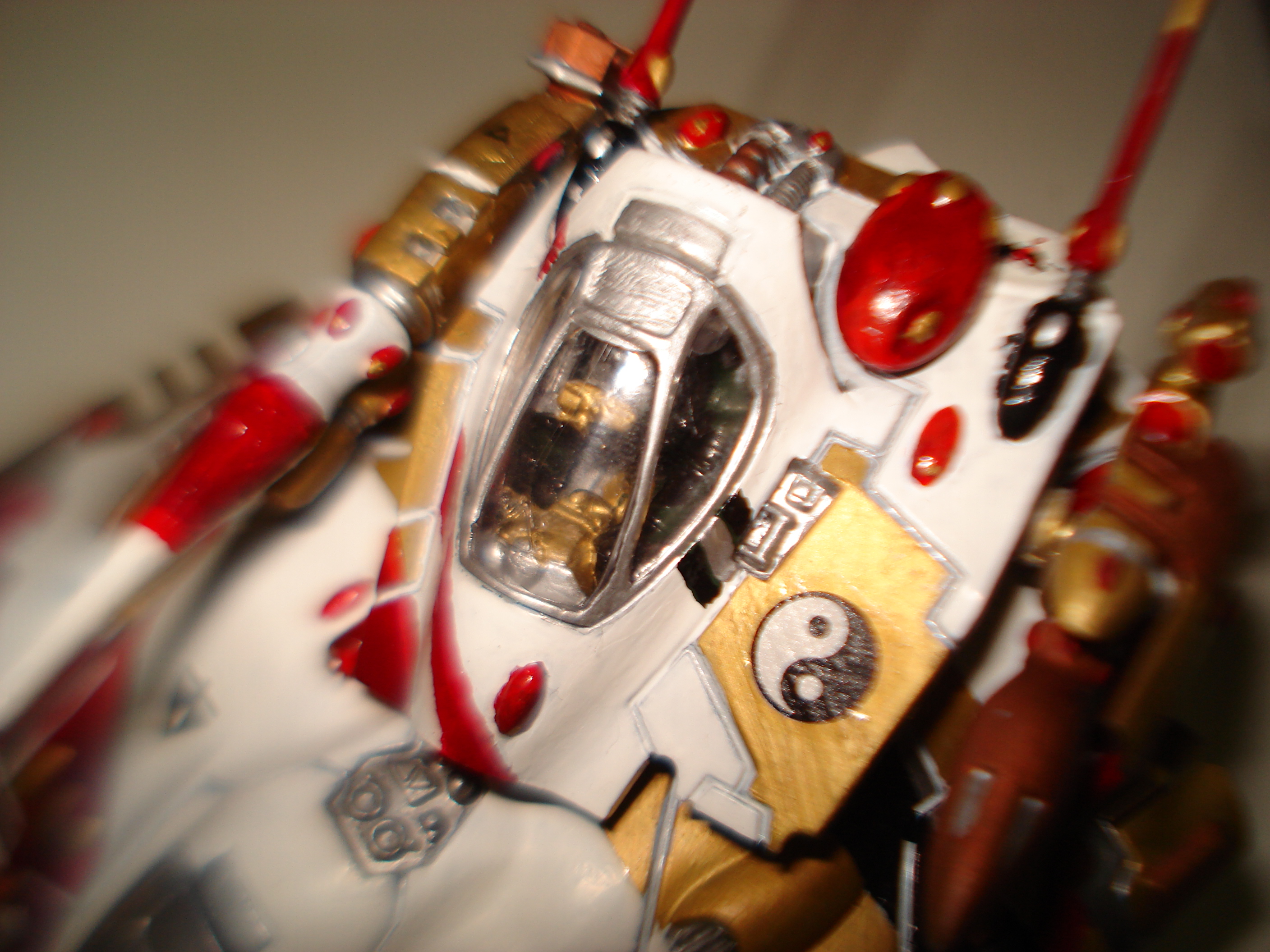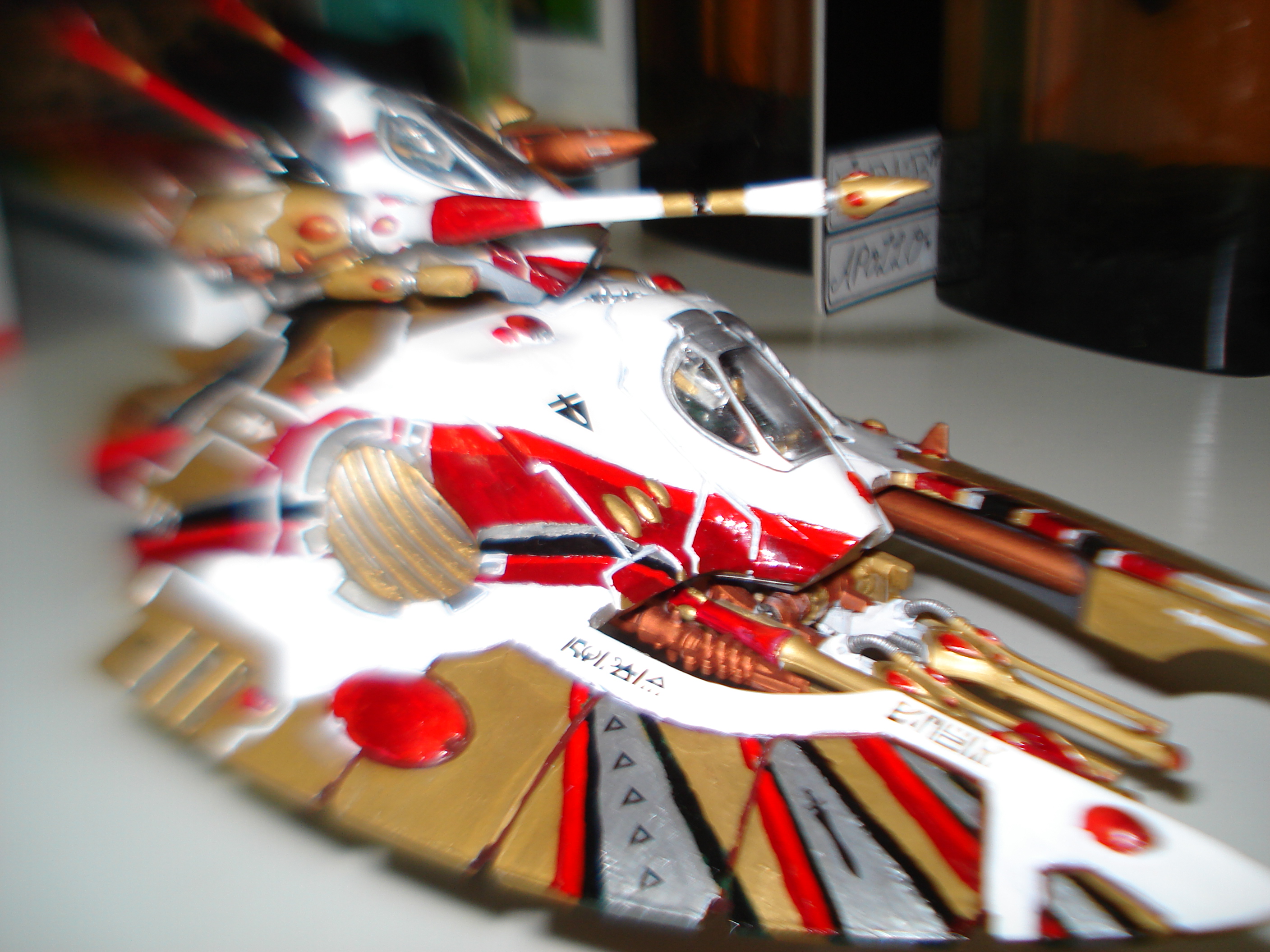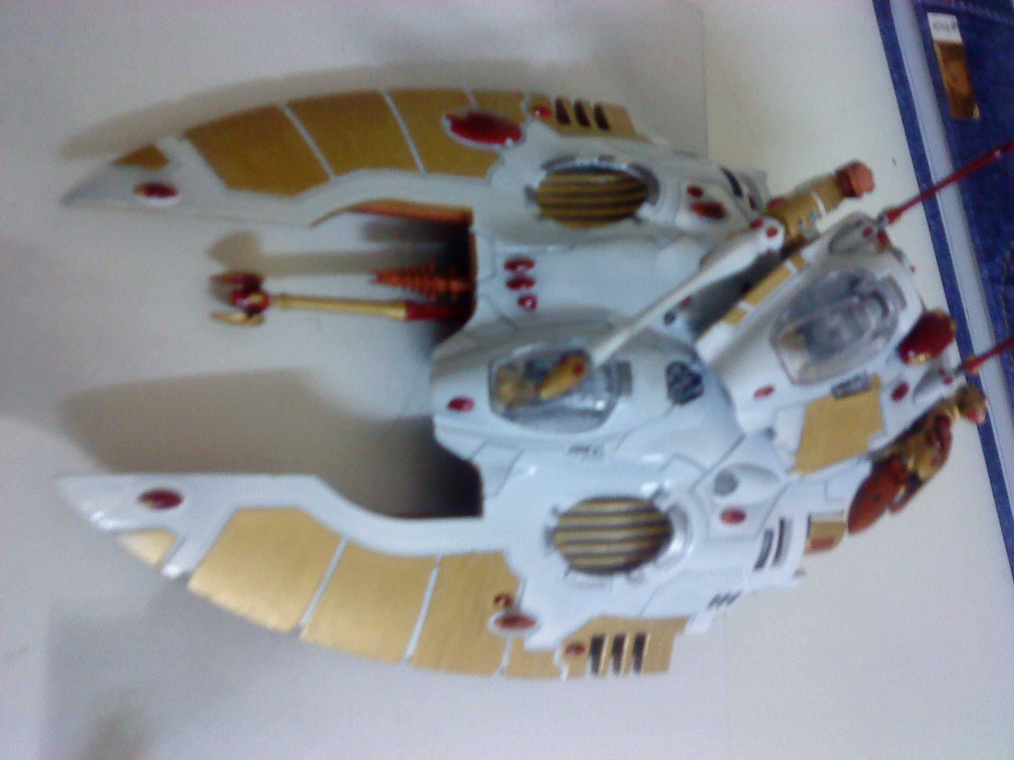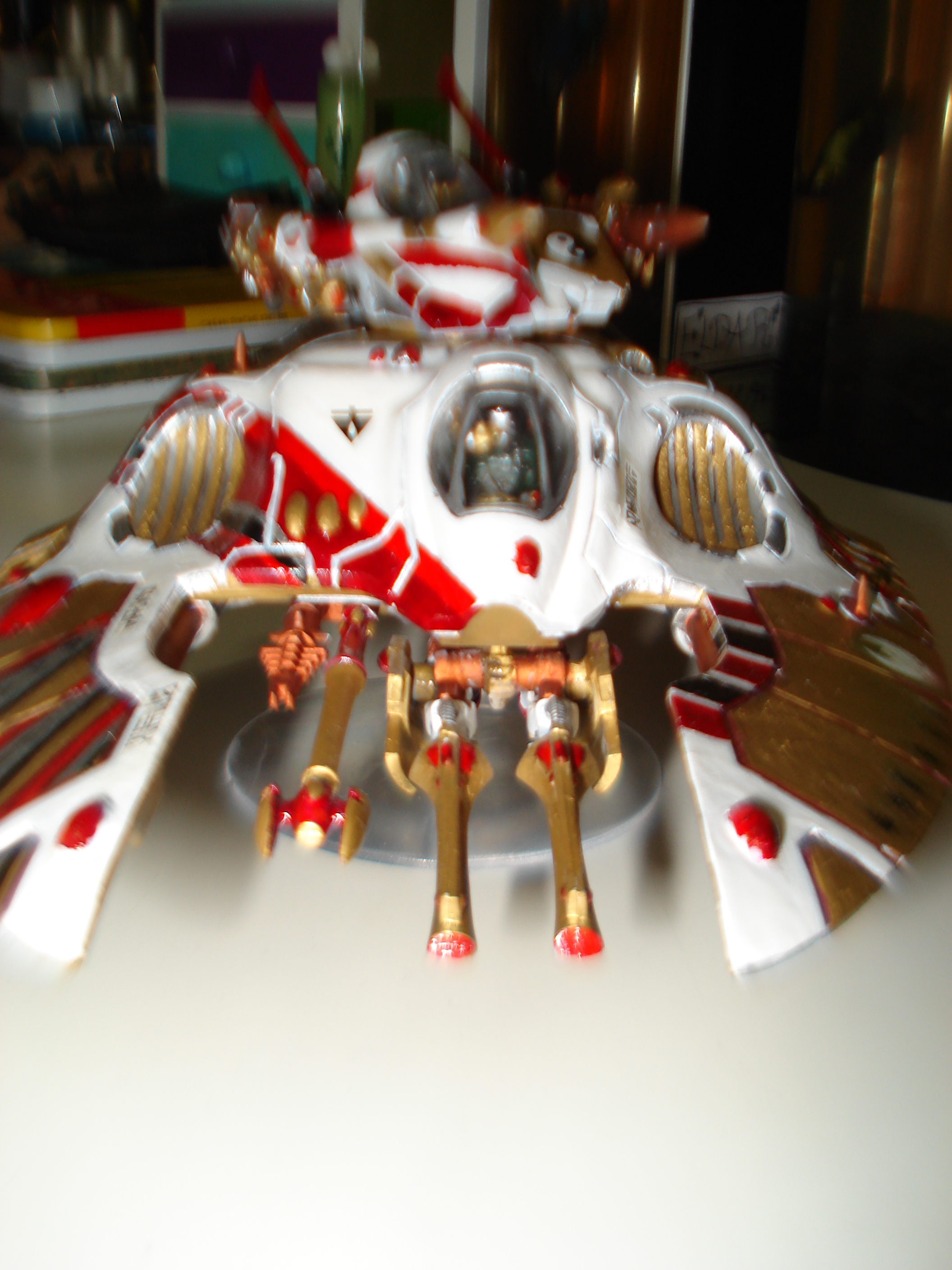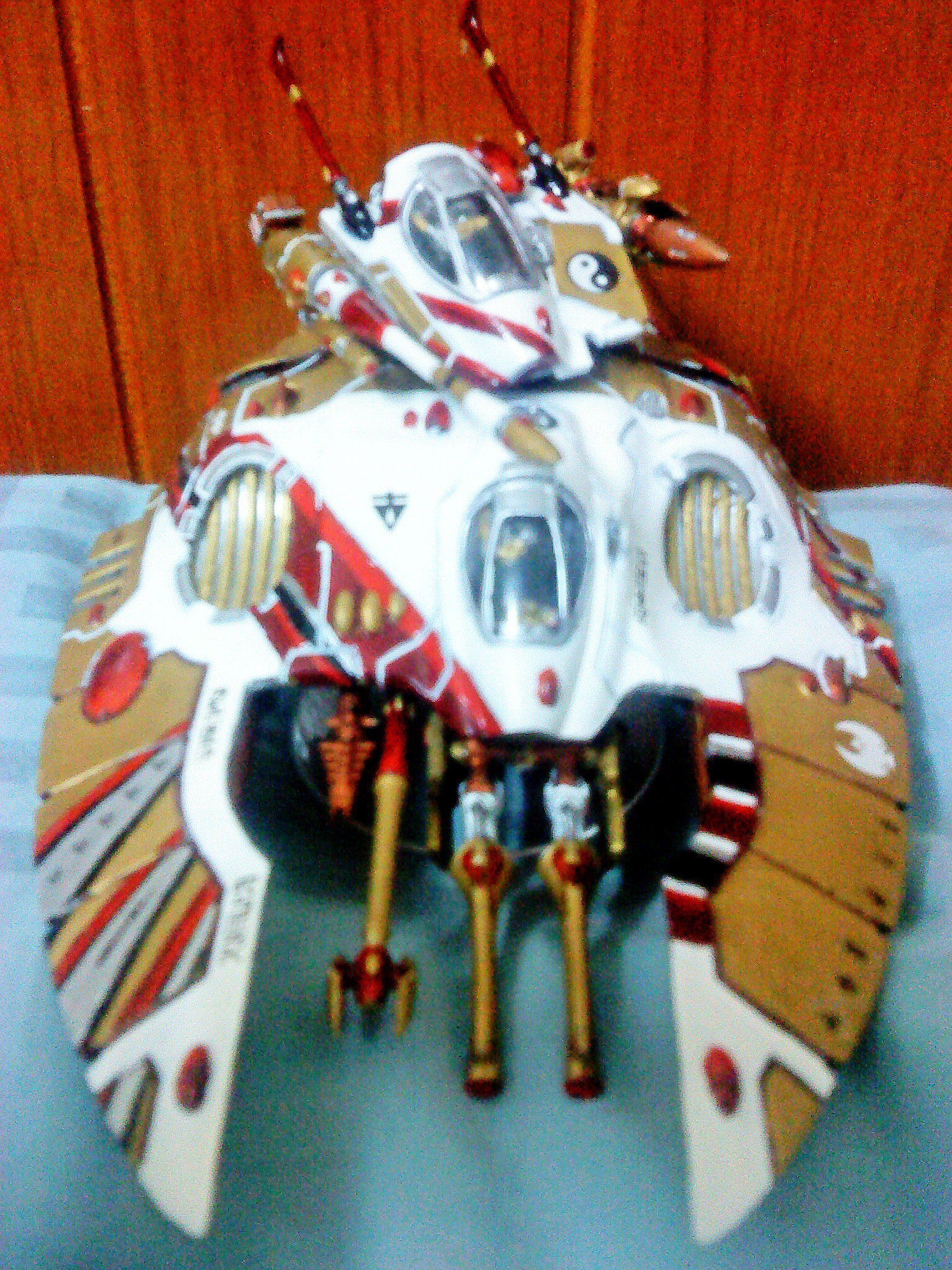 I like the colours, when you started off gold and white I didn't know if it was going to come together but adding the red and glyphs etc tied it in. I also like the way you've painted it nice and clean just how i imagine Eldar to be…