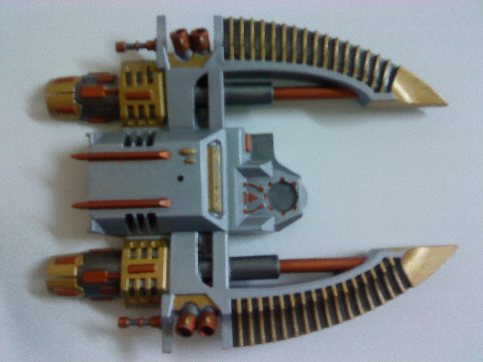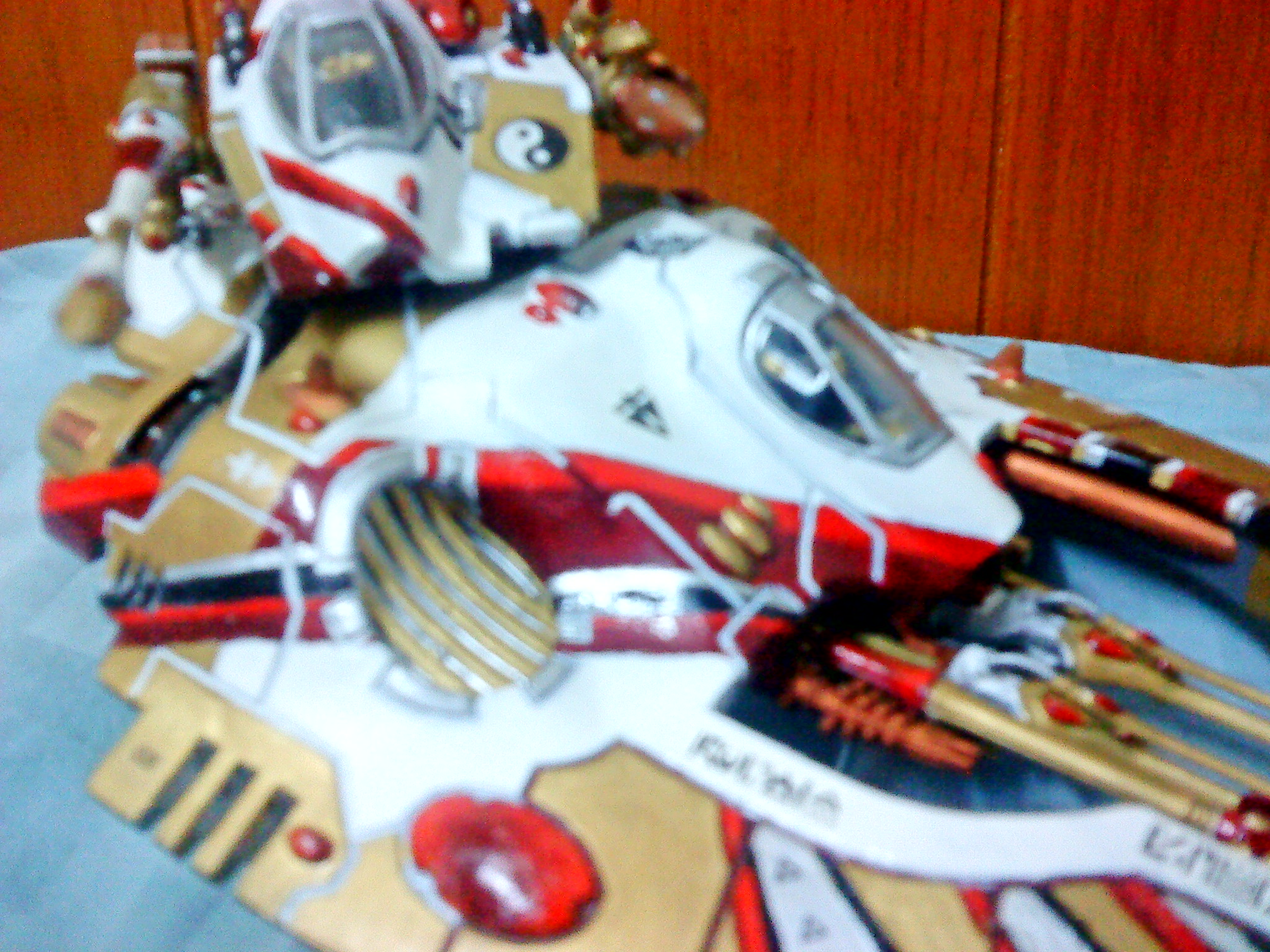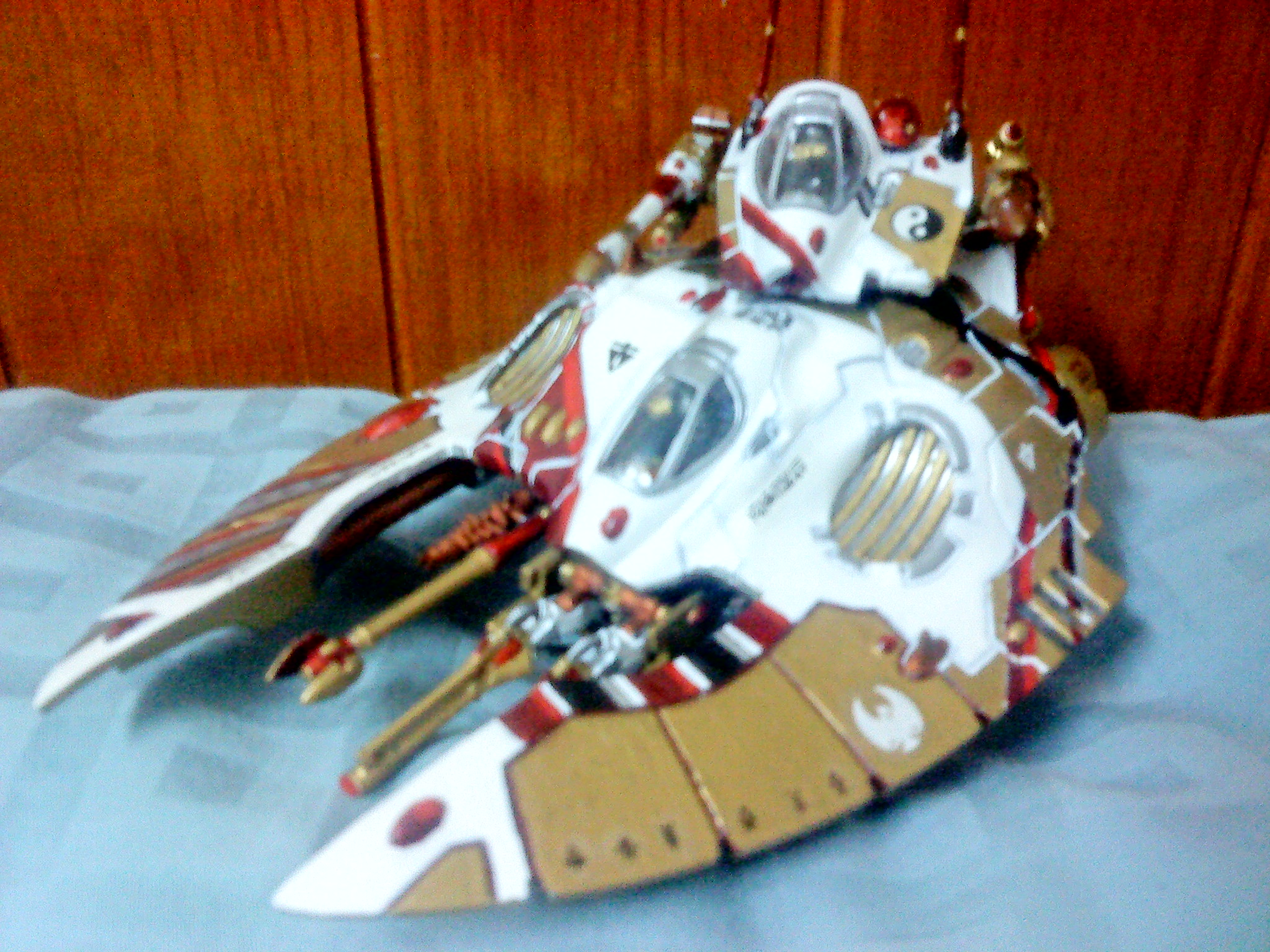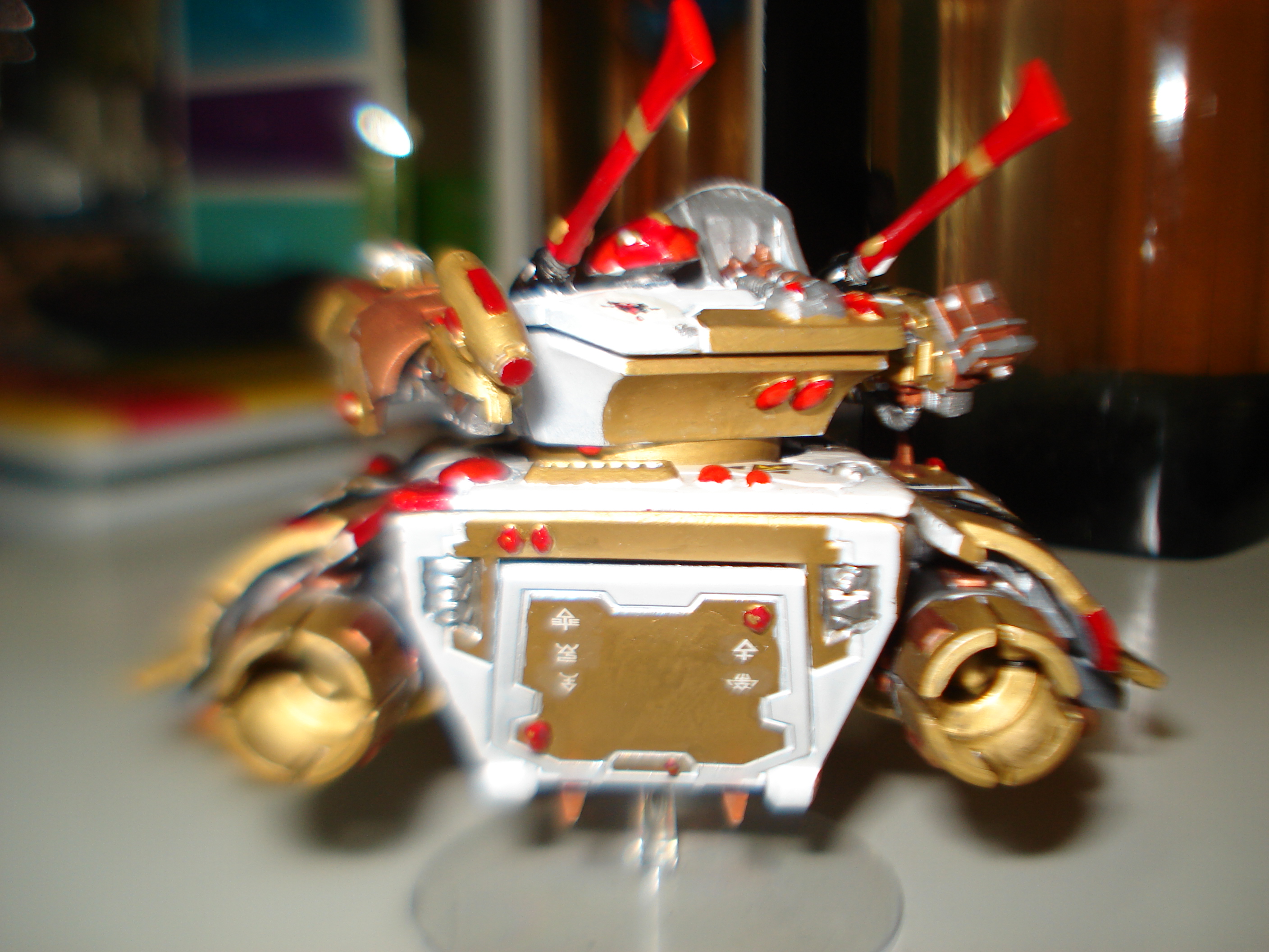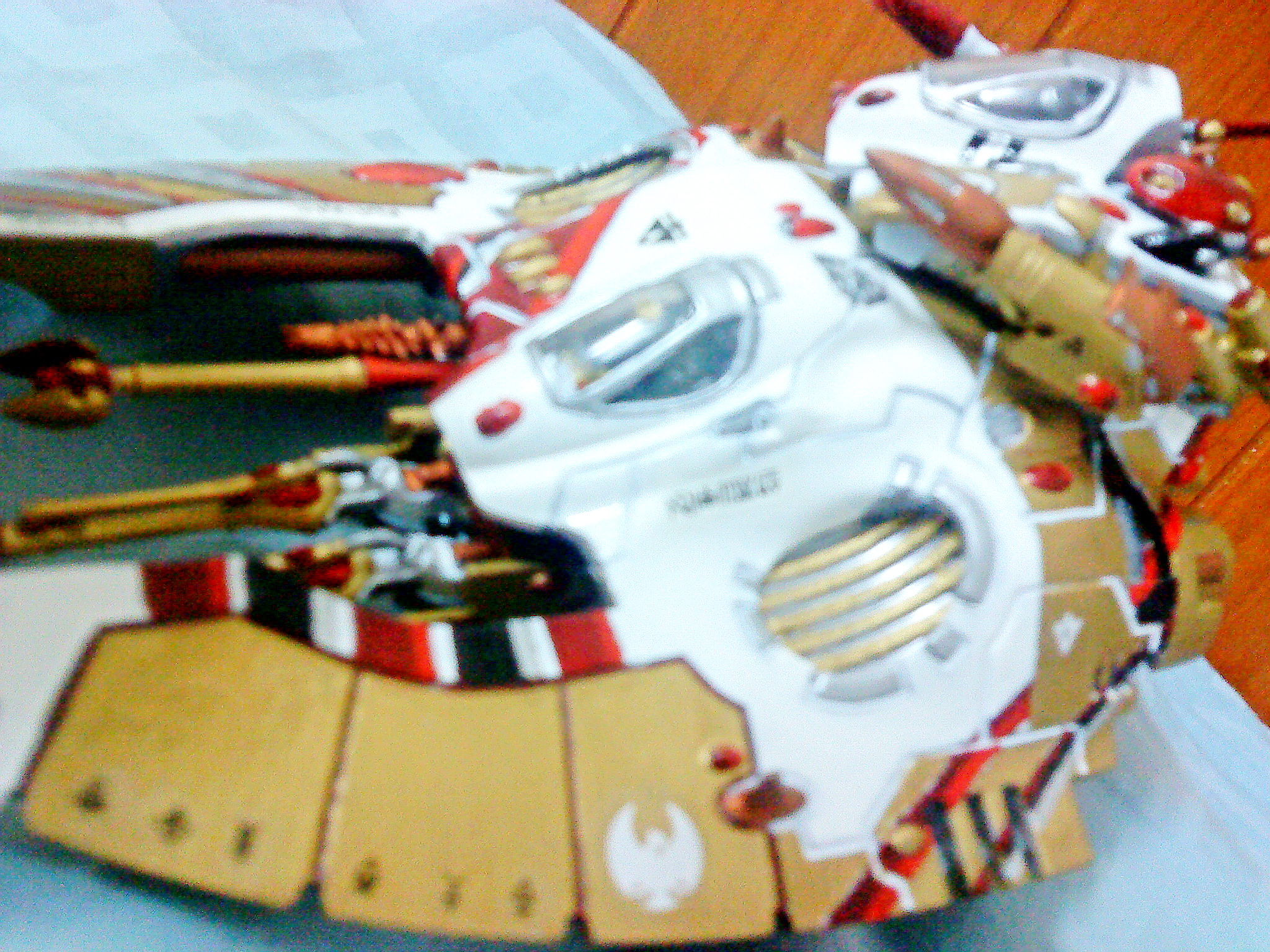 I like the colours, when you started off gold and white I didn't know if it was going to come together but adding the red and glyphs etc tied it in. I also like the way you've painted it nice and clean just how i imagine Eldar to be…