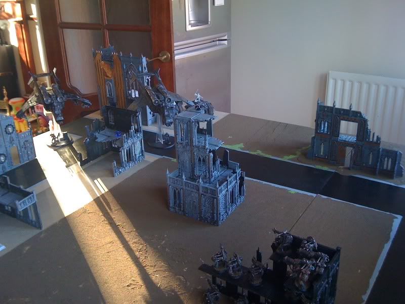 My turn I turbo boosted all Kopters behind the centre tower ruin, I moved the single Wagon out towards the tower objective too.