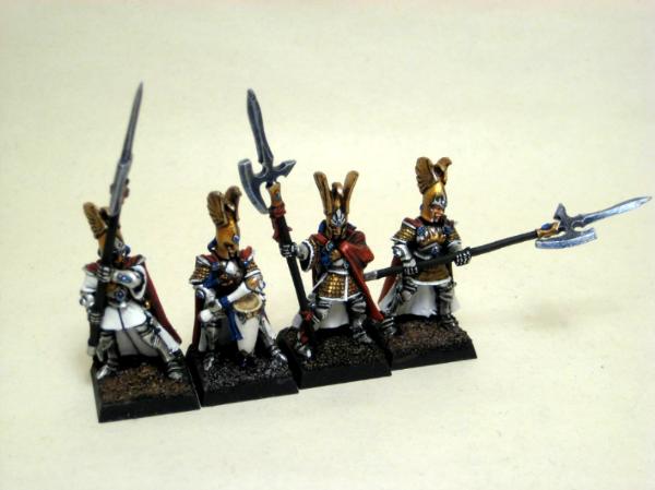 In any event, basically, I've got a High Elves army getting painted up (Caledor-themed), hopefully in time for some competitions in the Fall, as well as a budding Empire army which will hopefully provide a nice break from painting all these ridiculously large helmets