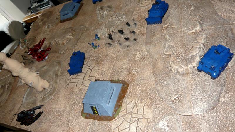 On the left, the predator single handedly killed enough Dire Avengers and send them fleeing, memories of slaughtering the lone marine now driven out of their minds by heavy bolter shells...