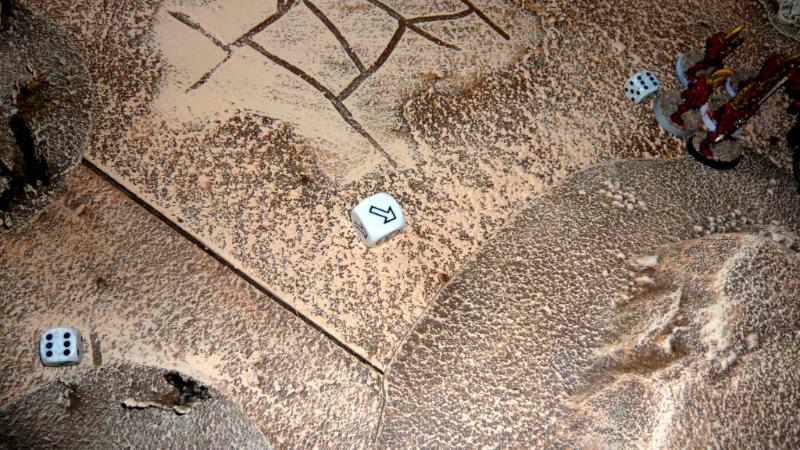 Shortly after that, the Dire Avengers piled out of their own Wave Serpent and put the hurt on the marines with a 24-dice bladestorm. Sadly, not much hurt, as only one marine fell!