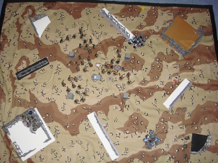 we were playing with a 10 point leway on 2000 points, but we decided to take off one jump pack from the wolves and have the point values closer to each other.