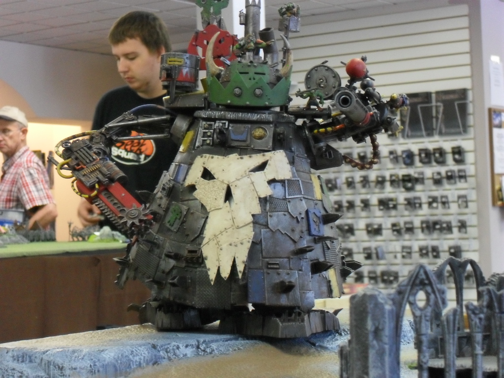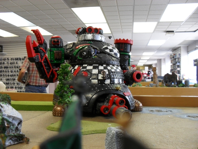 (b) It has been a while since I pulled out Gorkzilla, my armorcast gargant, so I figure he’ll be perfect for squaring off against really heavy (like a warlord) that Longshot shows up with. The