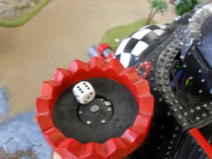 Pask’s remaining tanks unload on the Gargant, removing the remaining structure and sending it staggering forward 6” (towering inferno rule from the