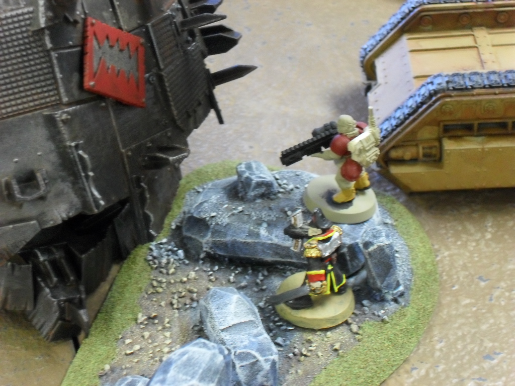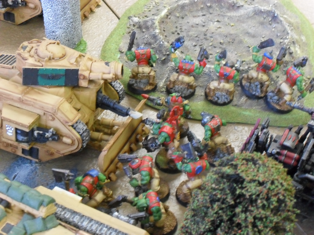 The Gargant misses with its gutbuster, but the mega-skorcha cooks an entire unit of veterans that was unlucky enough to be exposed after loosing their chimera.