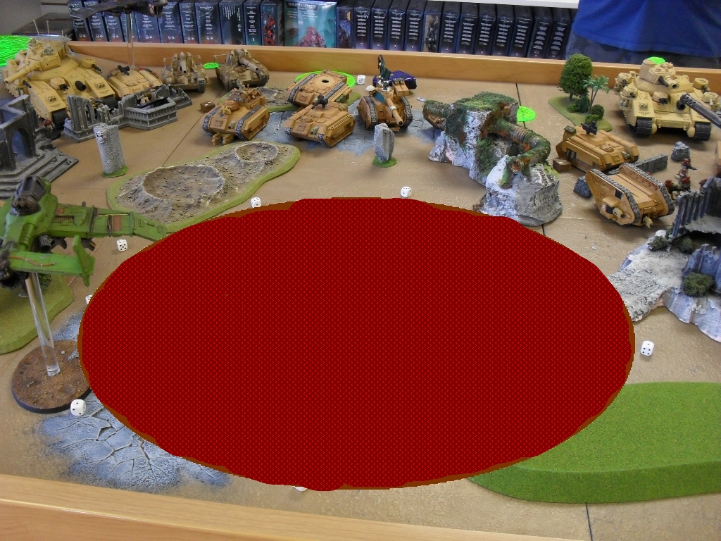 The vortex jumps over to the remaining damaged Leman Russ Executioner, destroying it.