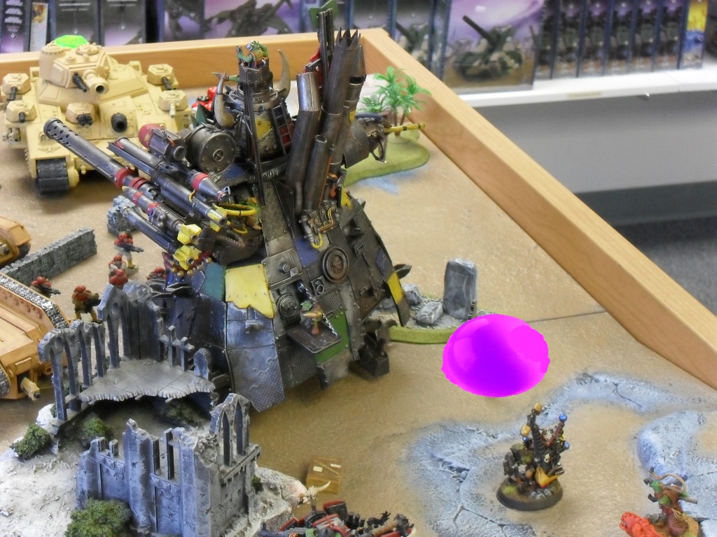 The vortex I just unleashed jumps forward and takes a structure point off of my Stompa (perfect!)
